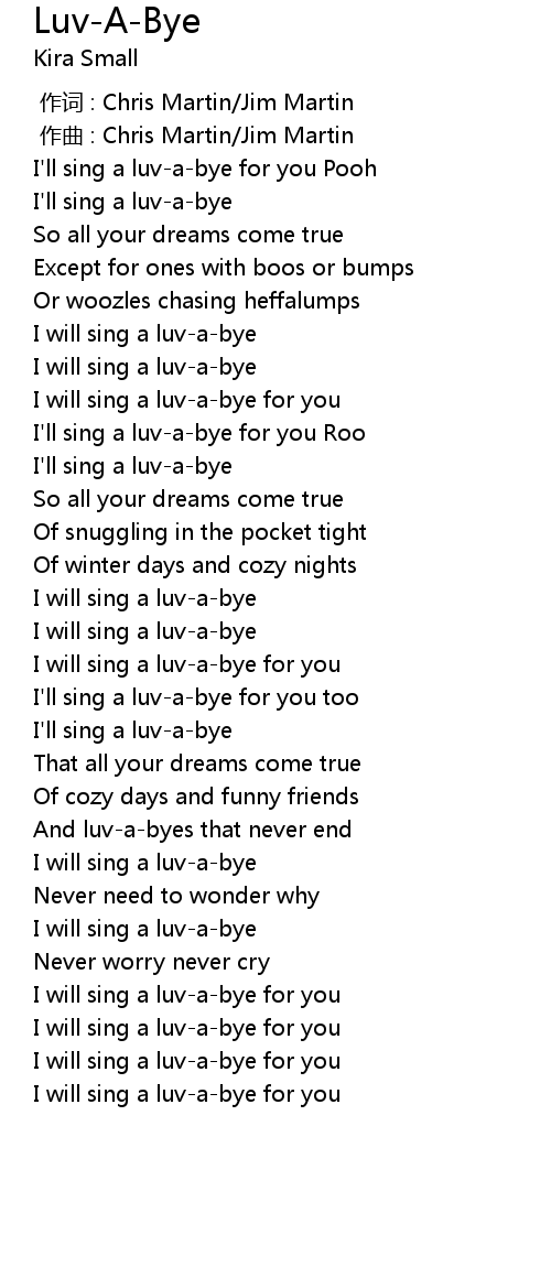 | [00:09.95] | I'll sing a luv-a-bye for you Pooh |