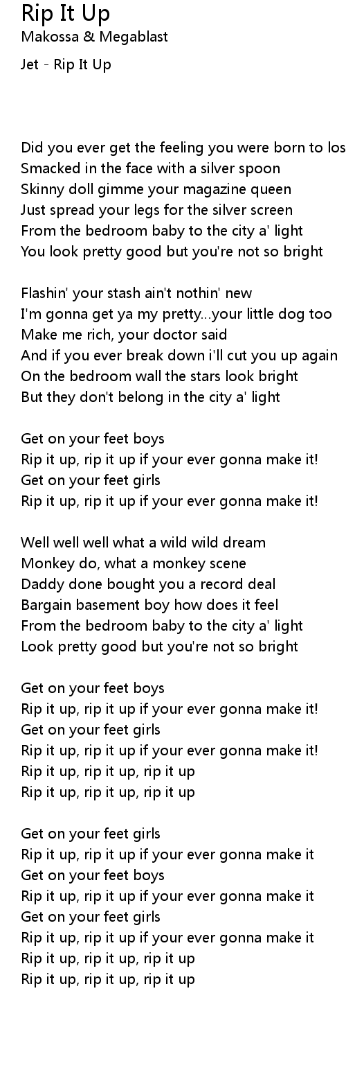 | Rip it up, rip it up, rip it up |