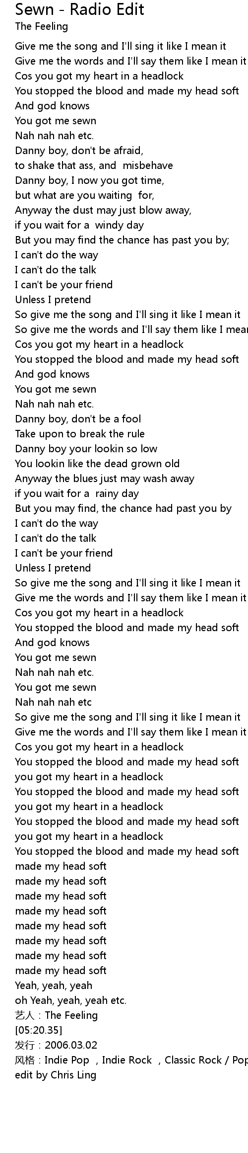 | [02:31.57] | So give me the song and I'll sing it like I mean it |