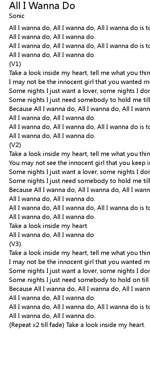 All I wanna do, All I wanna do, All I wanna do is touch you, |
