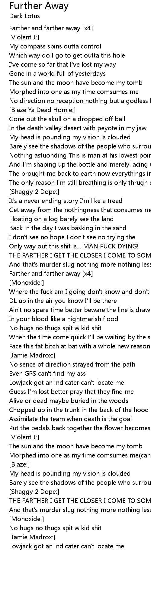 Farther and farther away [x4] |