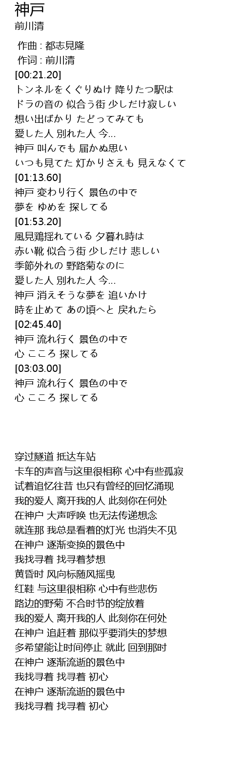 | [03:03.03] | 神戸 流れ行く 景色の中で |