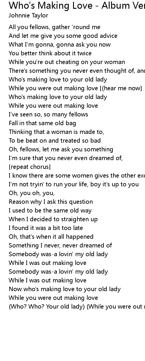 Now who's making love to your old lady |
