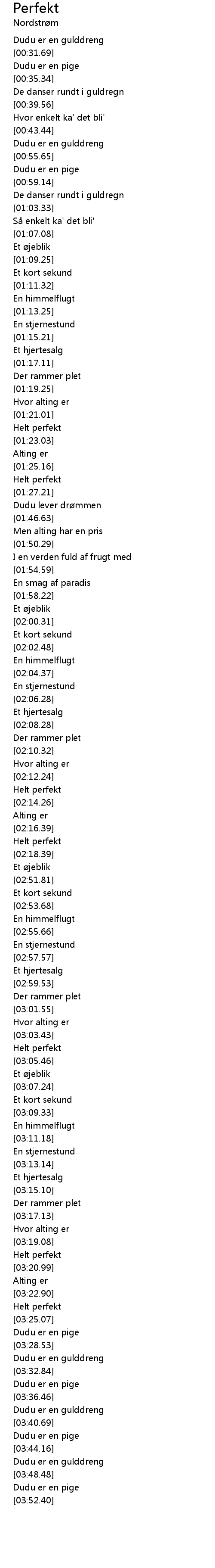| [03:19.81] | Helt perfekt |