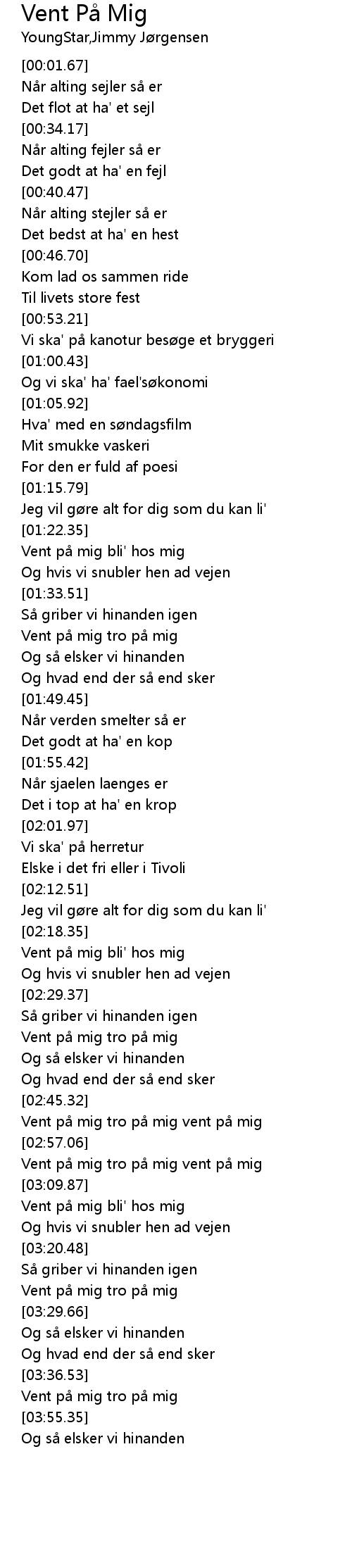 | [03:01.02] | Vent på mig tro på mig vent på mig |
