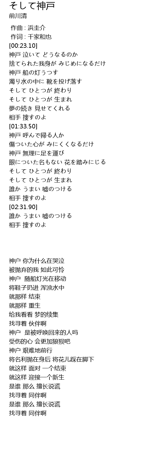 | [00:23.19] | 神戸 泣いて どうなるのか |