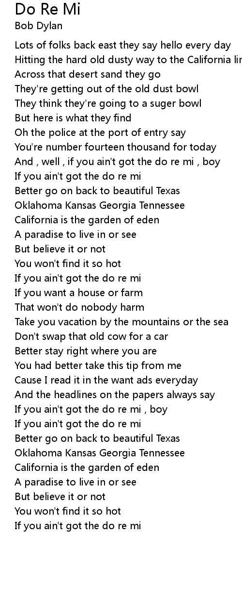 And , well , if you ain't got the do re mi , boy |