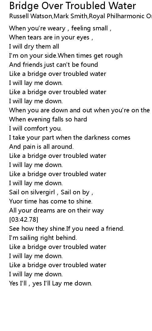 | [02:38.54] | Like a bridge over troubled water |