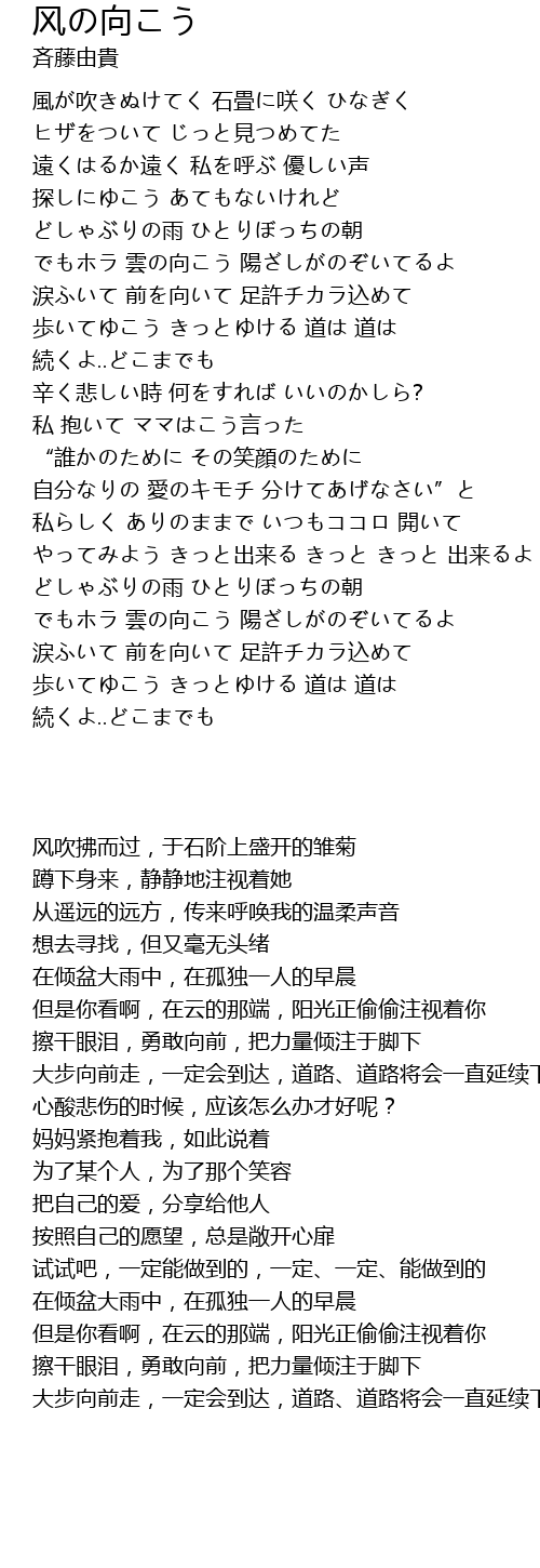 | Song | 风の向こう |
