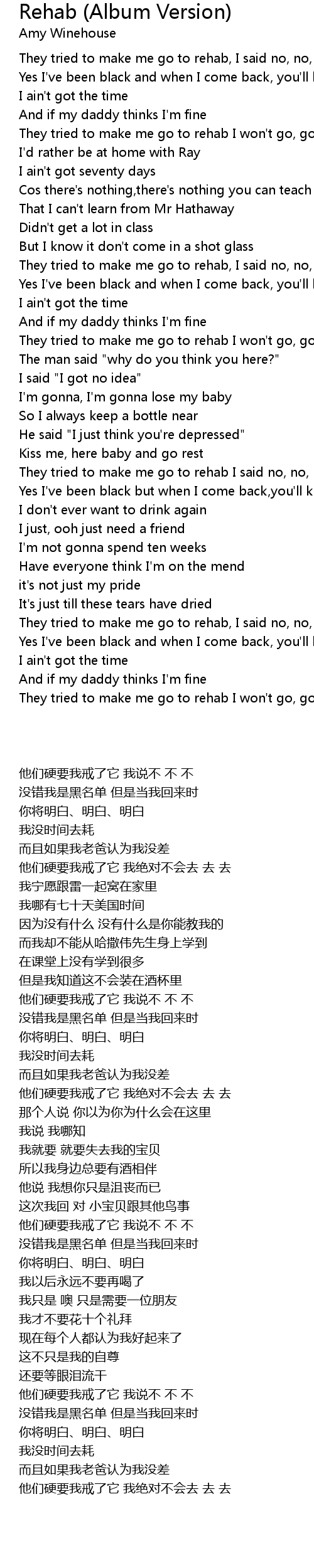 They tried to make me go to rehab I said no, no, no |
