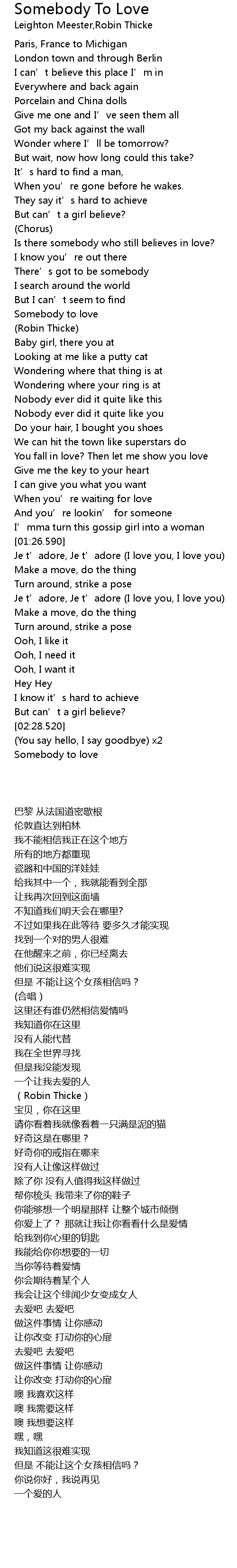 | [00:56.150] | Somebody to love |