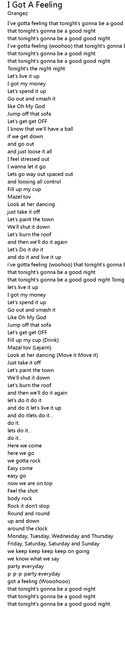i've gotta feeling (woohoo) that tonight's gonna be a good night |
