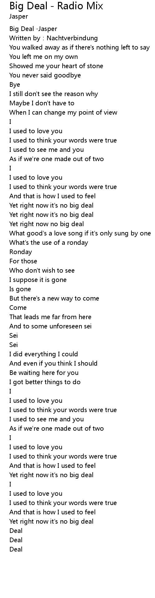 | Song | Big Deal - Radio Mix |