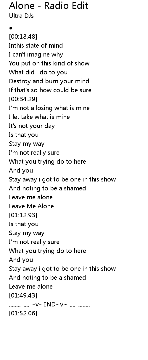| [01:47.56] | Leave me alone |