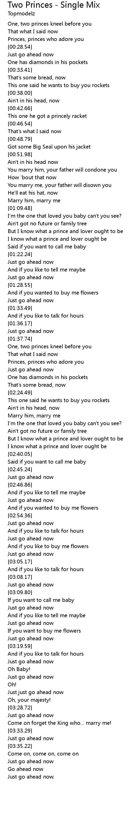 Two Princes - Single Mix Lyrics