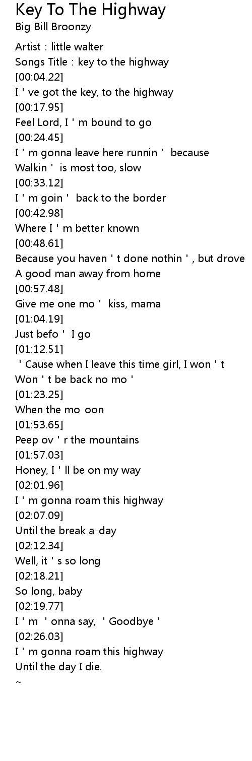| [00:01.97] | Songs Title: key to the highway |
