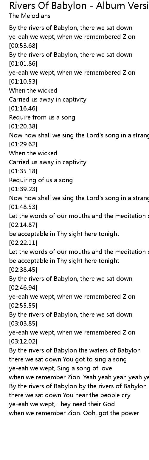 when we remember Zion. Yeah yeah yeah yeah yeah |