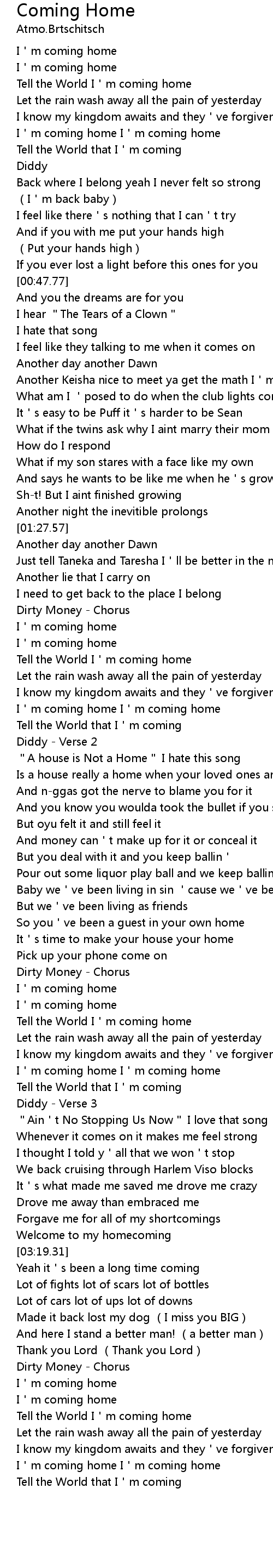 | [03:48.69] | I'm coming home I'm coming home |