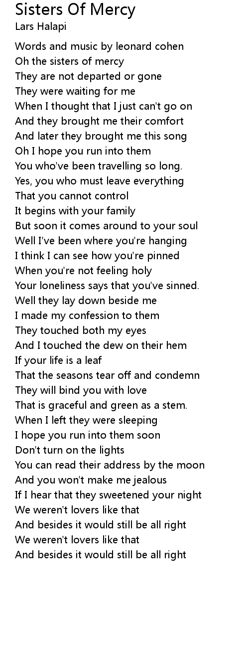 Oh the sisters of mercy |