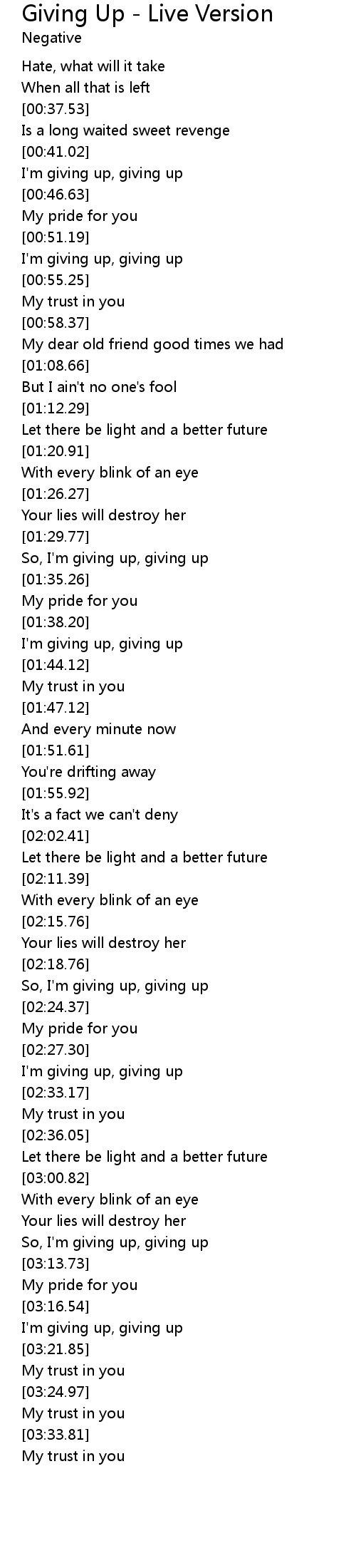 [03:19.85] I'm giving up, giving up