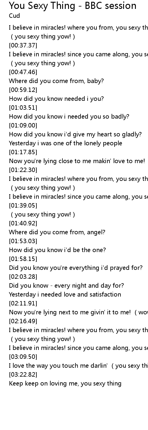 | [00:38.12] | I believe in miracles! since you came along, you sexy thing? |