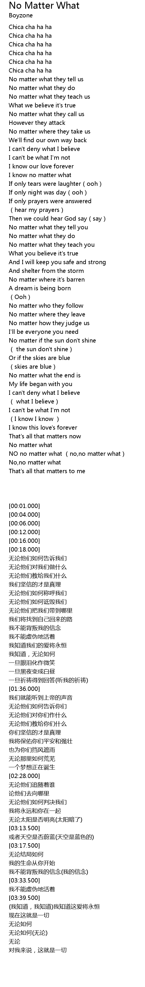 | [03:54.500] | No matter what |