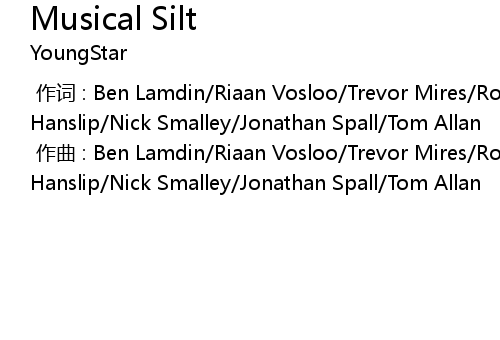 | [00:00.000] | 作曲 : Ben Lamdin/Riaan Vosloo/Trevor Mires/Ross Stanley/Mark Hanslip/Nick Smalley/Jonathan Spall/Tom Allan |