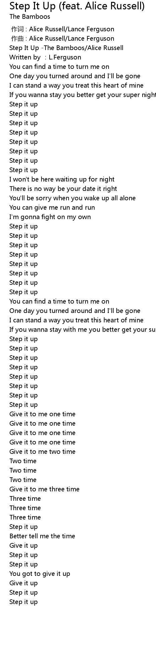 | [00:43.80] | Step it up |