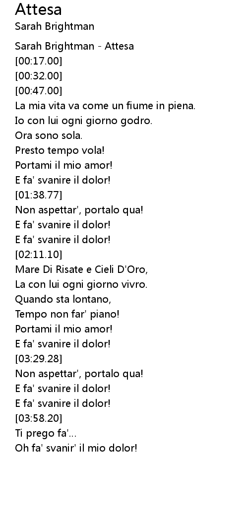 | [00:02.00] | Sarah Brightman - Attesa |