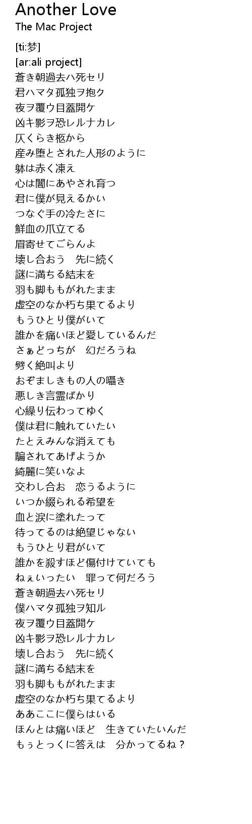 | [00:19.502] | 君ハマタ孤独ヲ抱ク |