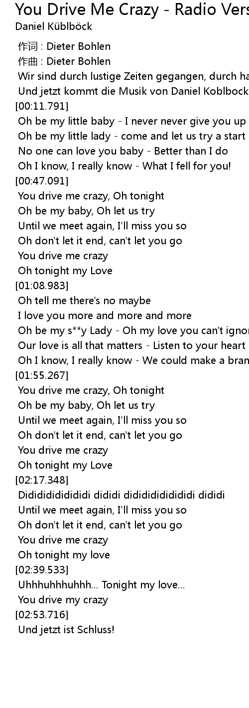 | [02:10.444] | You drive me crazy |