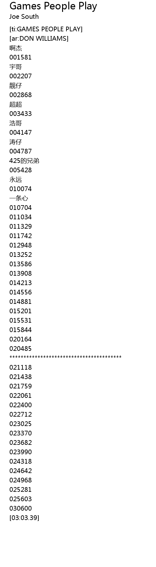 | [02:42.38]024318] | And the games people play |