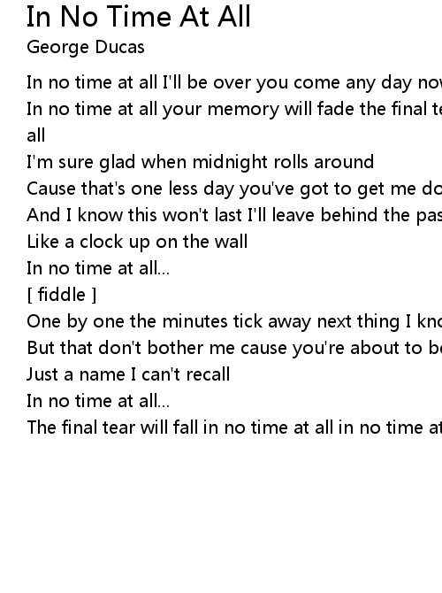In no time at all your memory will fade the final tear will fall in no time at all |