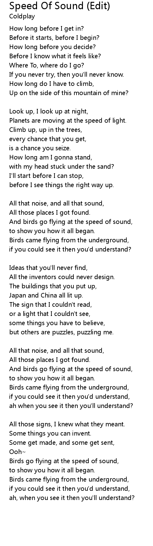 And birds go flying at the speed of sound, |