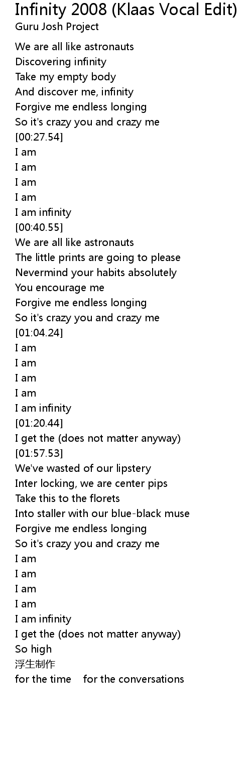 | [02:23.22] | I am infinity |
