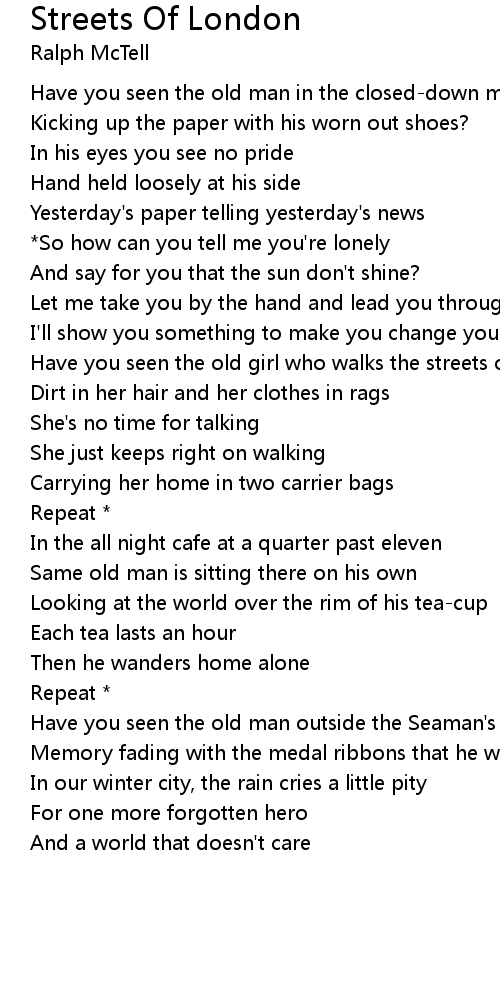 Have you seen the old girl who walks the streets of London |