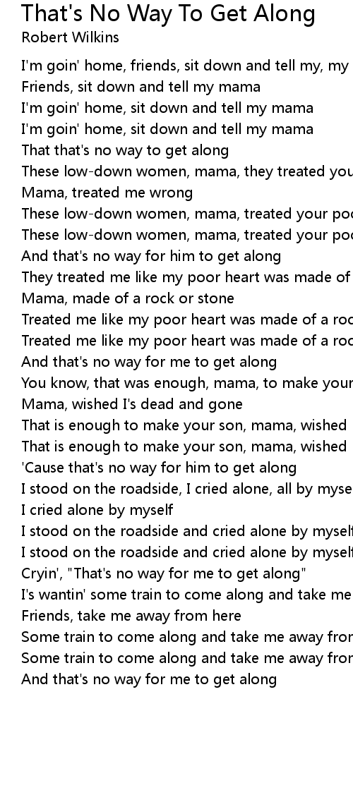 And that's no way for me to get along |