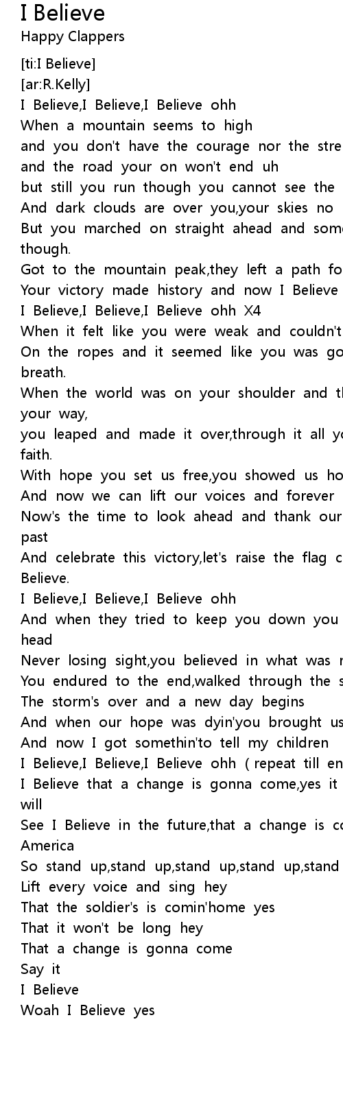 | [03:11.483] | I Believe, I Believe, I Believe ohh repeat till end |