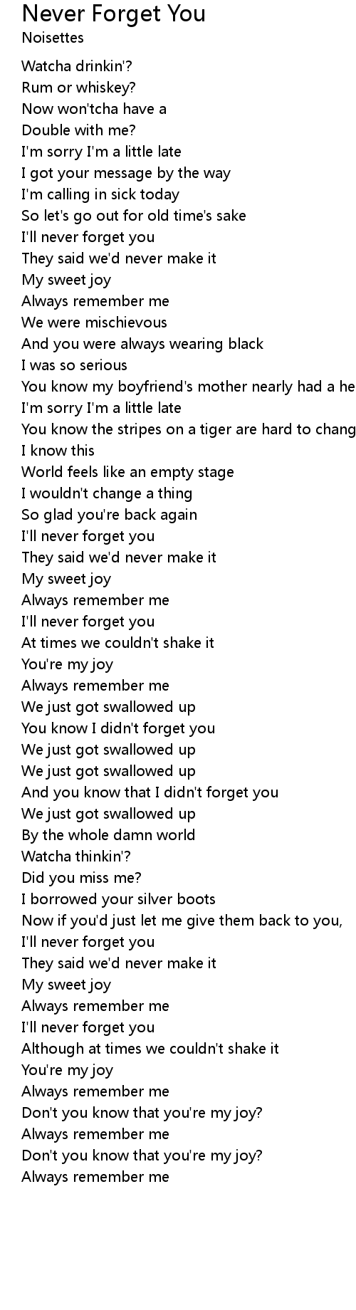 I'll never forget you |