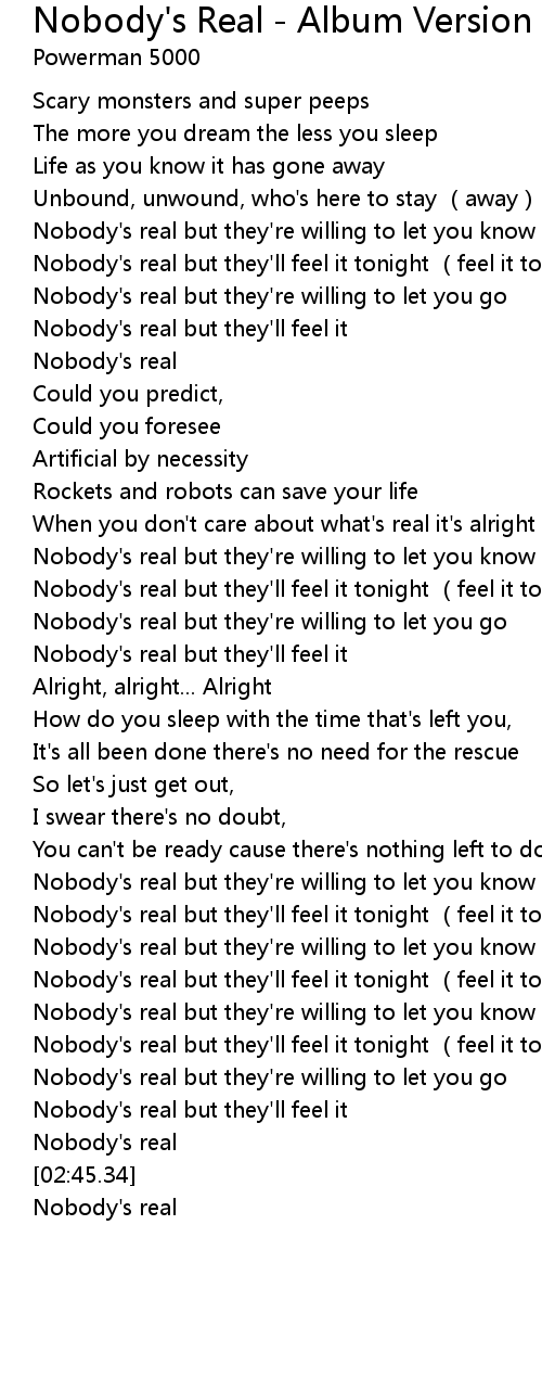 | [00:59.66] | Nobody's real |