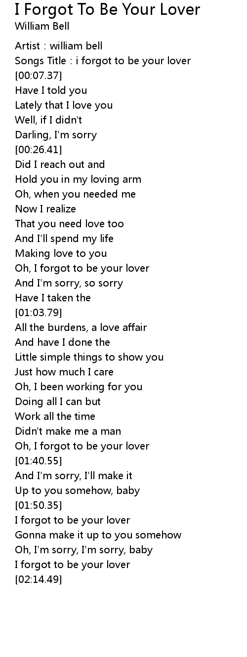 | [00:03.44] | Songs Title:i forgot to be your lover |