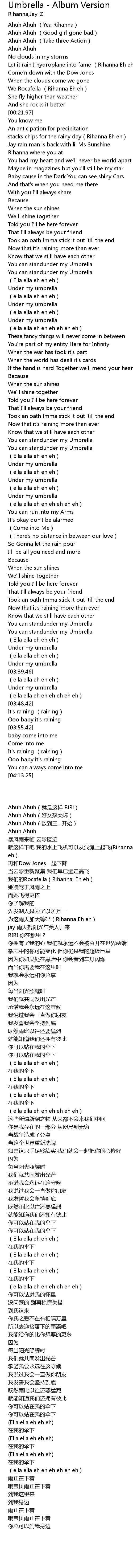 | [00:18.51] | We Rocafella Rihanna Eh eh |