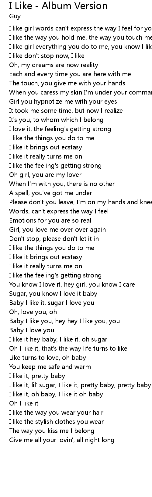 I like girl everything you do to me, you know I like it |