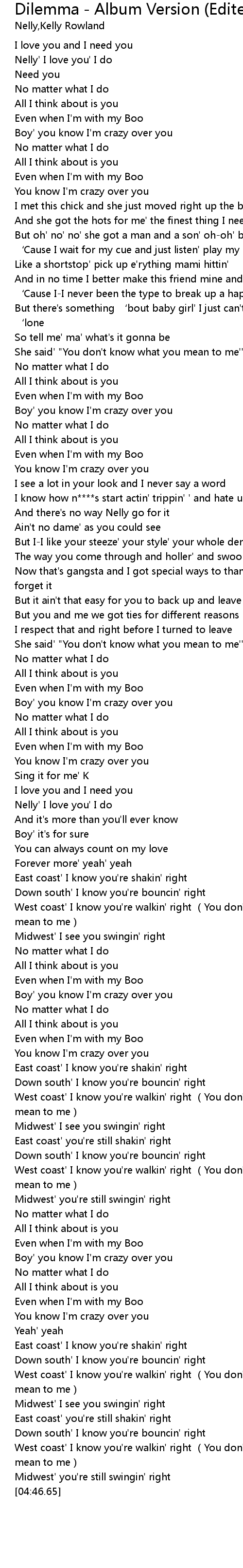 | [02:45.20] | Nelly' I love you' I do |