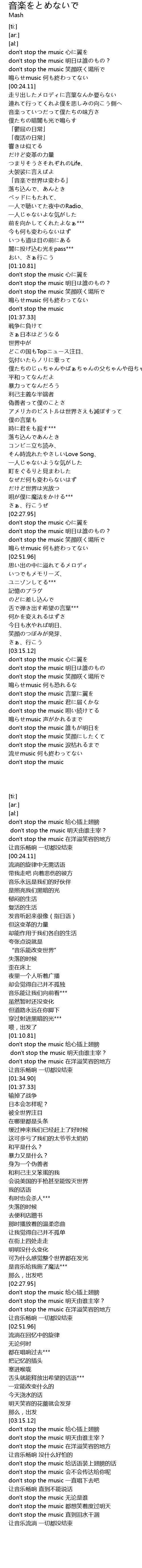 | [01:17.03] | don't stop the music 明日は誰のもの? |