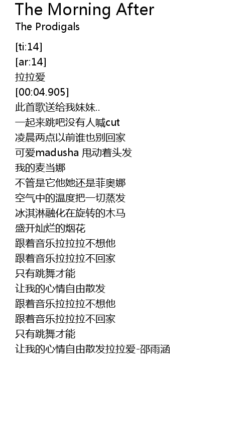 | [00:53.273] | 跟着音乐拉拉拉不回家 |