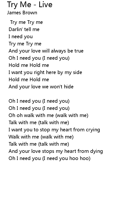 | Song | Try Me - Live |