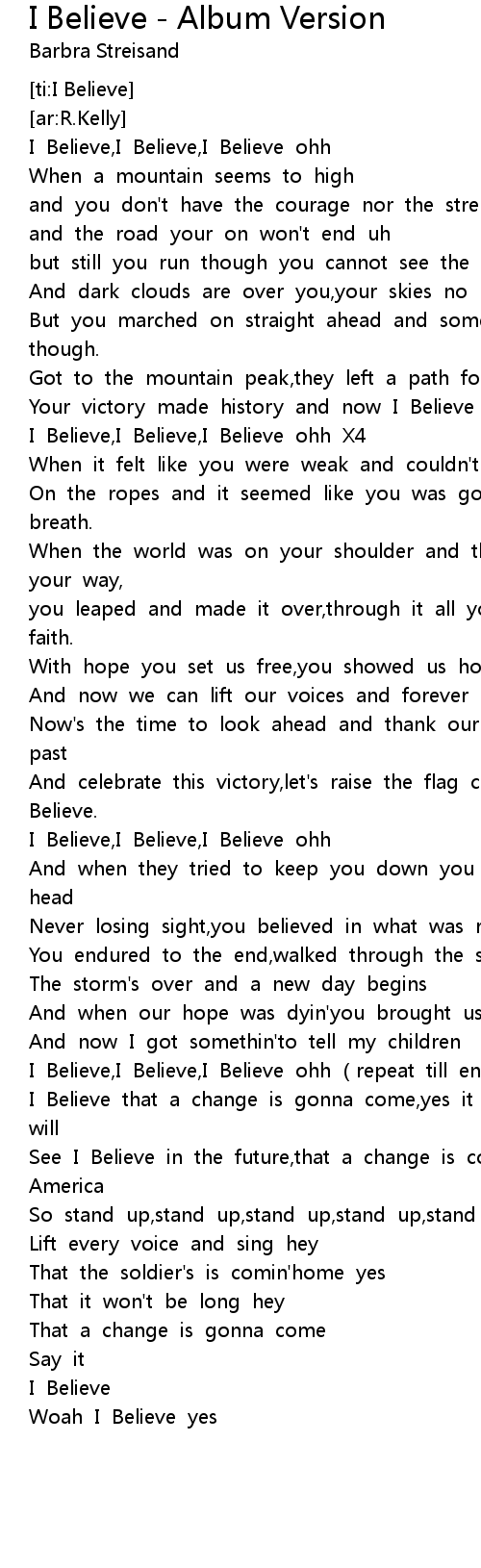 | [03:11.483] | I Believe, I Believe, I Believe ohh repeat till end |