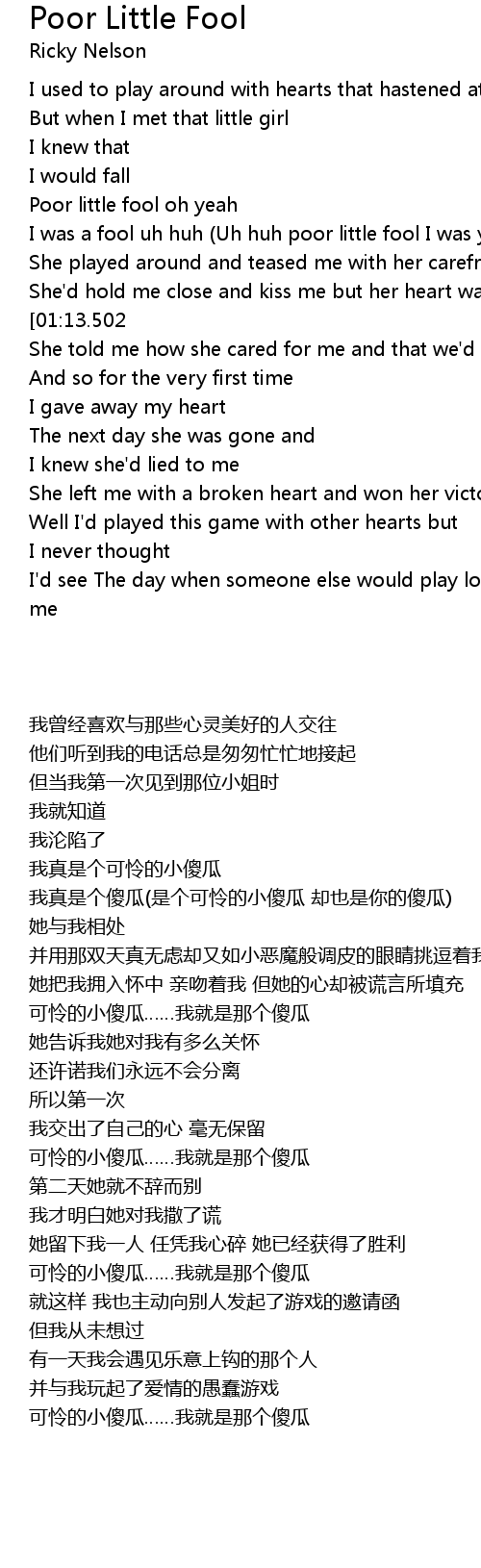 Poor little fool oh yeah |