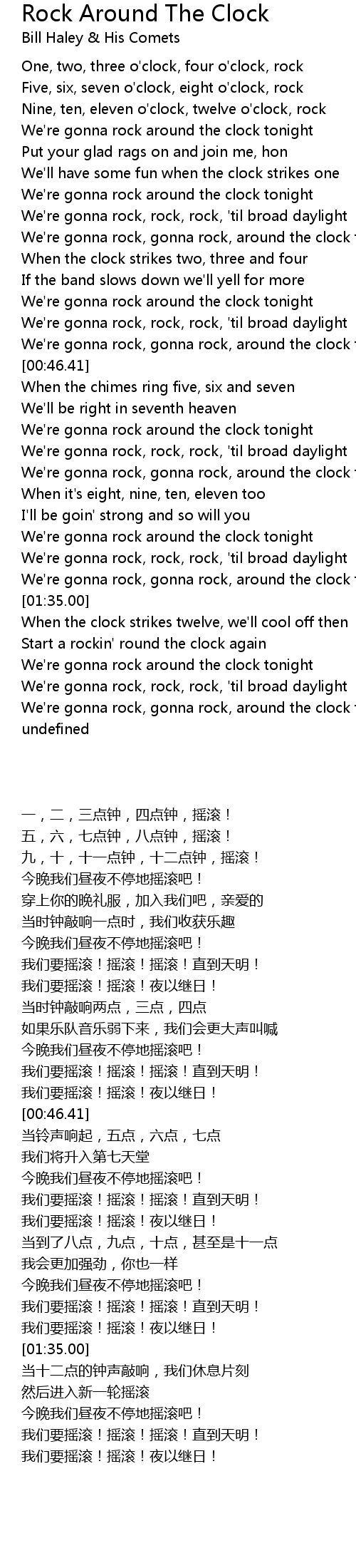 [00:01.08] One, two, three o'clock, four o'clock, rock